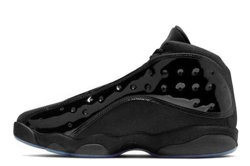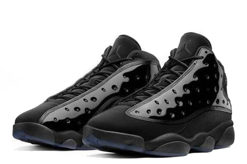 Much like the Air Jordan 11, the Air Jordan 13 is available in all black tones, with a patent leather finish that combines suede and fur to create a layered look. The laser leopard eyes in the upper are also different, and they are presented in black, giving us more freshness.