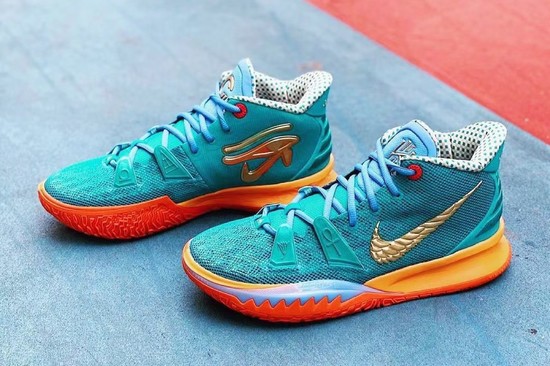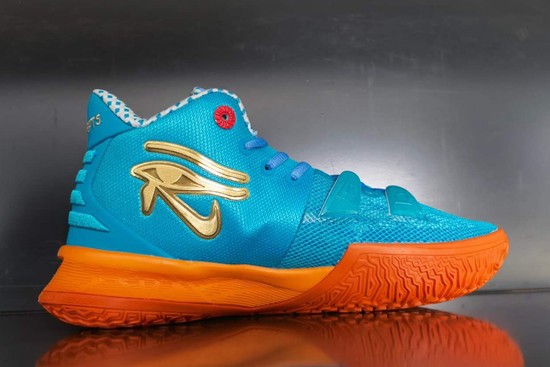 This shoe is made of blue as the main color, supplemented by orange and gold embellishment details, the overall color matching is particularly eye-catching. The special thing is that the Swoosh of the shoe body is shown in the cheap kyrie shoes, jordans for cheap shape of golden feathers and wings, and the inner side is echoed by the familiar golden eye totem. A closer look at the Swoosh has also become part of the pattern, which is very ingenious.
