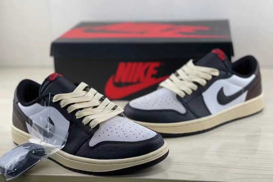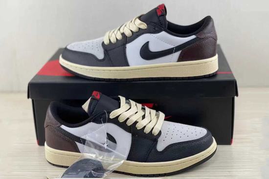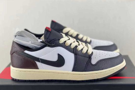 Air Jordan 1 Low OG Black Mocha shoe body design The low-top frame is presented in white pebbled leather, with brown suede and black forming the base, with details on the heel and insole for a visually stunning look.
