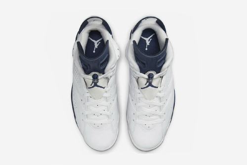 The new Air Jordan 6 Midnight Navy uses white as the main tone, with navy blue tongue, shoe buckle and midsole. The logo on the cheap air jordans heel is white embroidered, while the logo on the sole is blue, and the visual effect is simple. take.